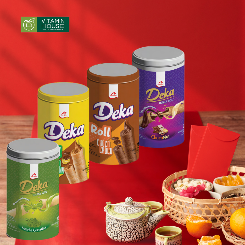 Bánh xốp ống Deka (Deka Wafer Roll) là dòng sản phẩm nổi tiếng đến từ Indonesia, được yêu thích bởi sự kết hợp hoàn hảo giữa lớp vỏ bánh quế giòn rụm và nhân kem béo ngậy, đậm vị. Với thiết kế đóng hộp thiếc sang trọng và tiện lợi, Deka là món quà lý tưởng cho gia đình và bạn bè.