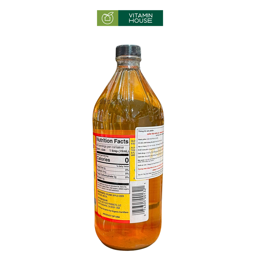 Giấm táo Organic Bragg Mỹ chai 946ml chính hãng - Vitamin House.