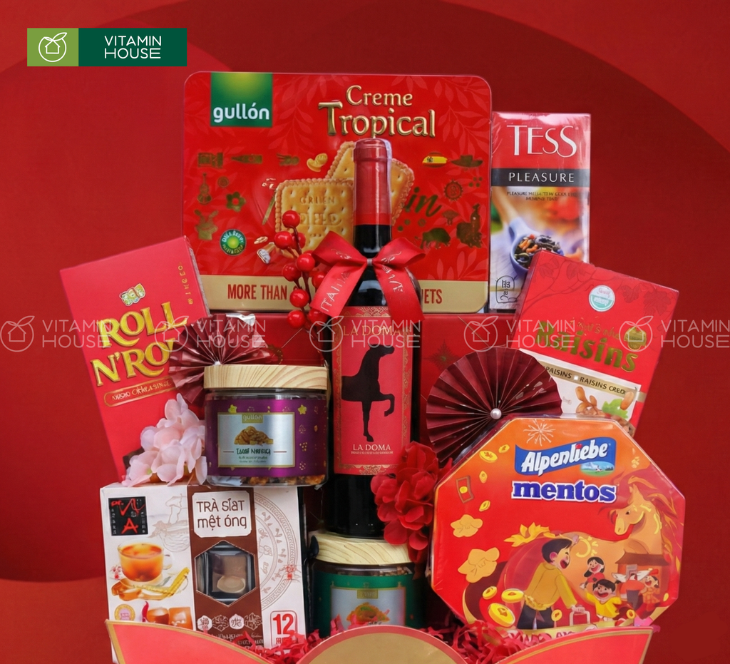 Giỏ Quà Tết Xuân Sum Vầy 10 - Set Rượu Vang Đỏ La Doma & Bánh Kẹo Nhập Khẩu Cao Cấp