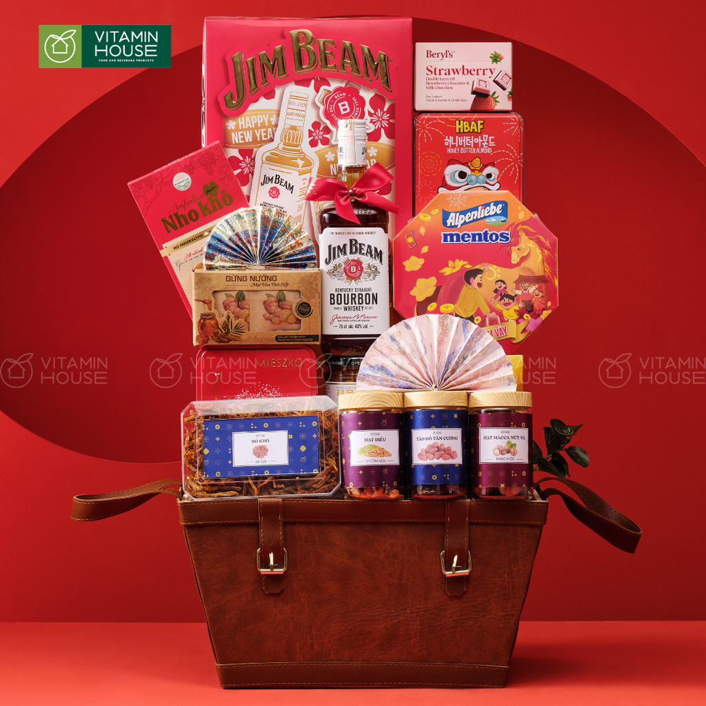 Giỏ quà tết Vitamin House bộ quà tặng hoàn hảo, được thiết kế để truyền tải lời chúc Phúc Lộc, An Khang và Khởi Đầu Mạnh Mẽ cho một năm mới. Với sự kết hợp tinh hoa của các dòng sản phẩm bánh kẹo, đồ uống và hạt dinh dưỡng cao cấp, đây không chỉ là một giỏ quà mà còn là biểu tượng của sự sang trọng và gu thẩm mỹ đẳng cấp.
