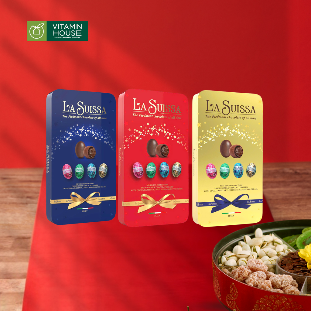 Sô-cô-la sữa hình trứng mini La Suissa hộp 220g Đỏ/Vàng/Xanh