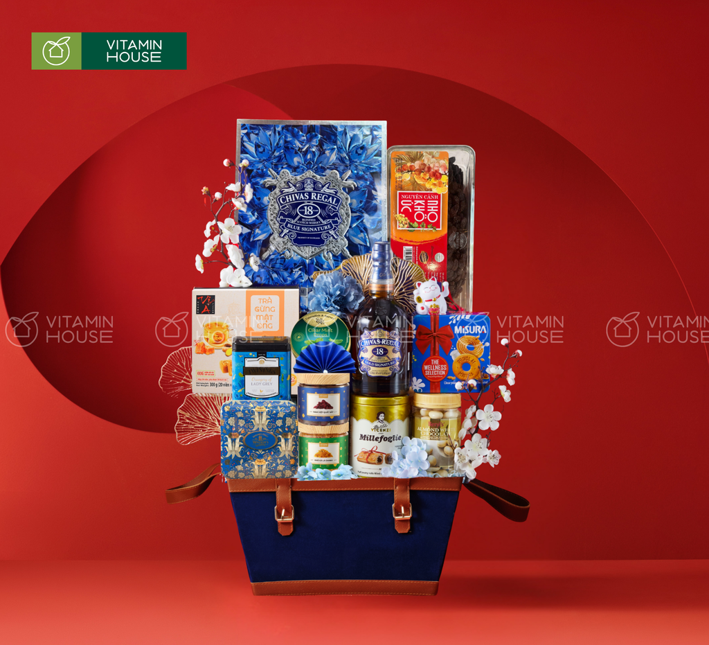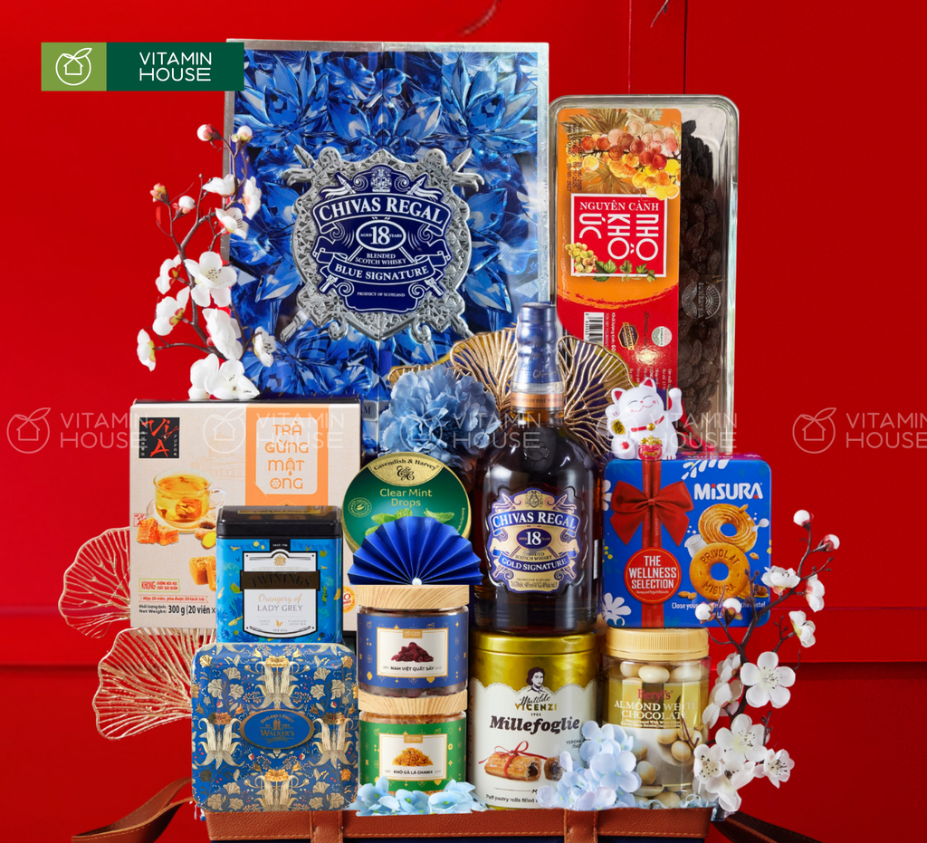 Giỏ Quà Tết Xuân Đại Cát 11 - Tone Xanh Dương Chivas 18 Sang Trọng