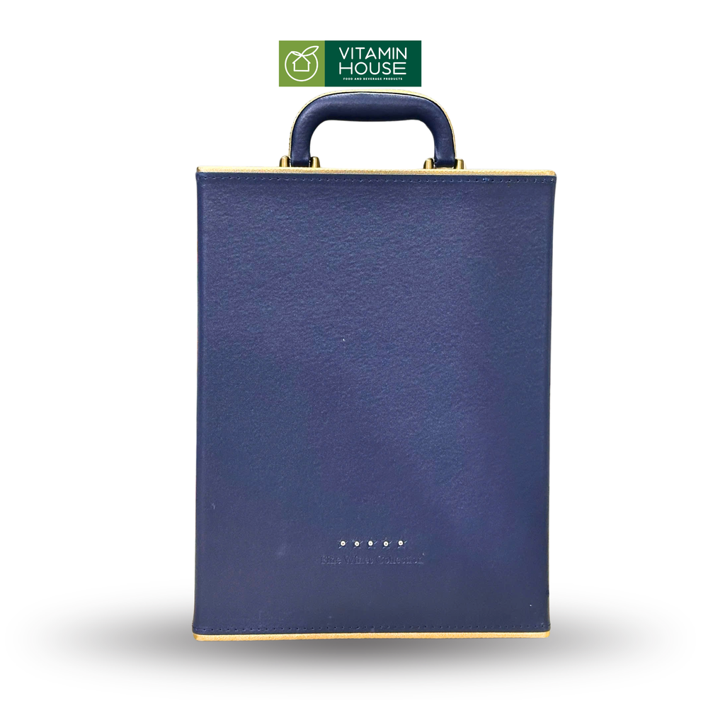Hộp Rượu Đôi Da Xanh Navy Viền Vàng (279-M13)