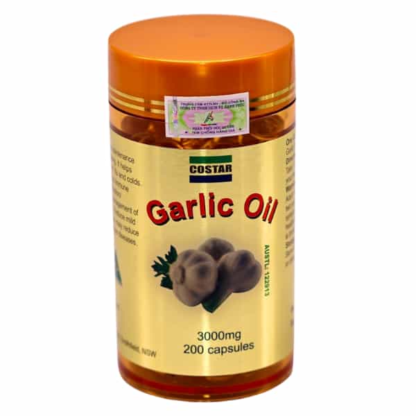 Tinh dầu tỏi Costar Úc với hàm lượng Allicin cao giúp tăng cường đề kháng, phòng và hỗ trợ điều trị cảm cúm, giảm cholesterol bảo vệ tim, phòng ngừa ung thư... Sản phẩm rất được ưa chuộng tại Úc. Hàm lượng tinh dầu tỏi lên đến 3000mg, sẽ giúp đẩy lùi cảm cúm, tăng cường đề kháng, hỗ trợ sức khỏe. Sản phẩm tỏi nguyên chất, không chứa thêm hóa chất độc hại nên yên tâm khi sử dụng.