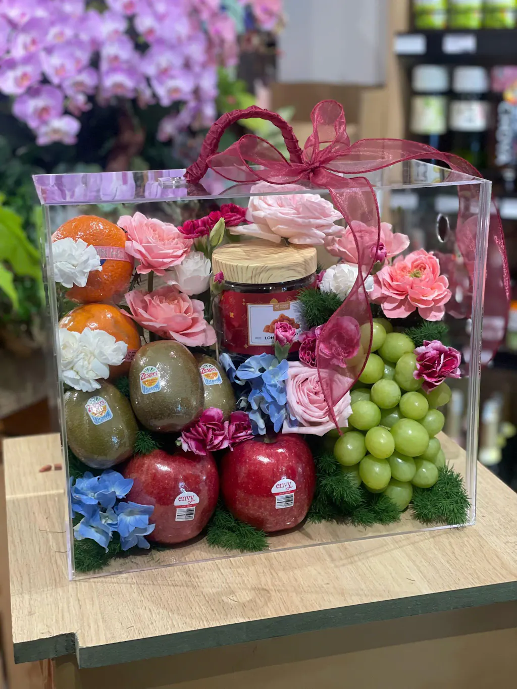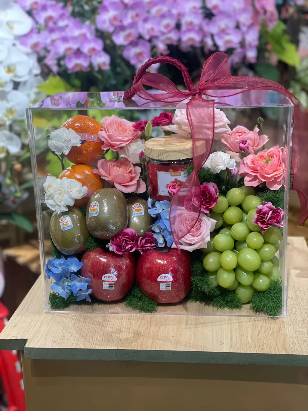 Hộp trái cây đẹp xuất sắc luôn shop ơi! Mình thích kiểu đóng hộp mica trong suốt thế này, nhìn vừa hiện đại vừa sang, mang đi biếu đối tác cực kỳ tự tin.